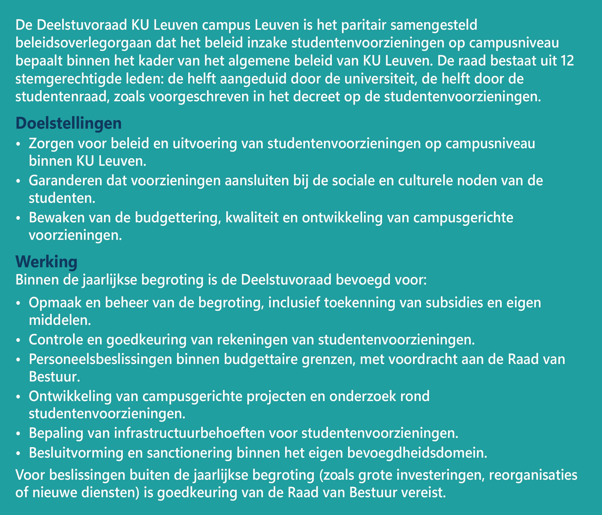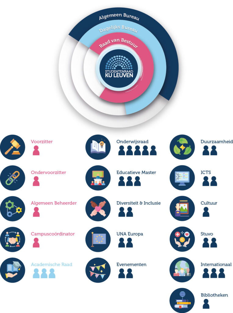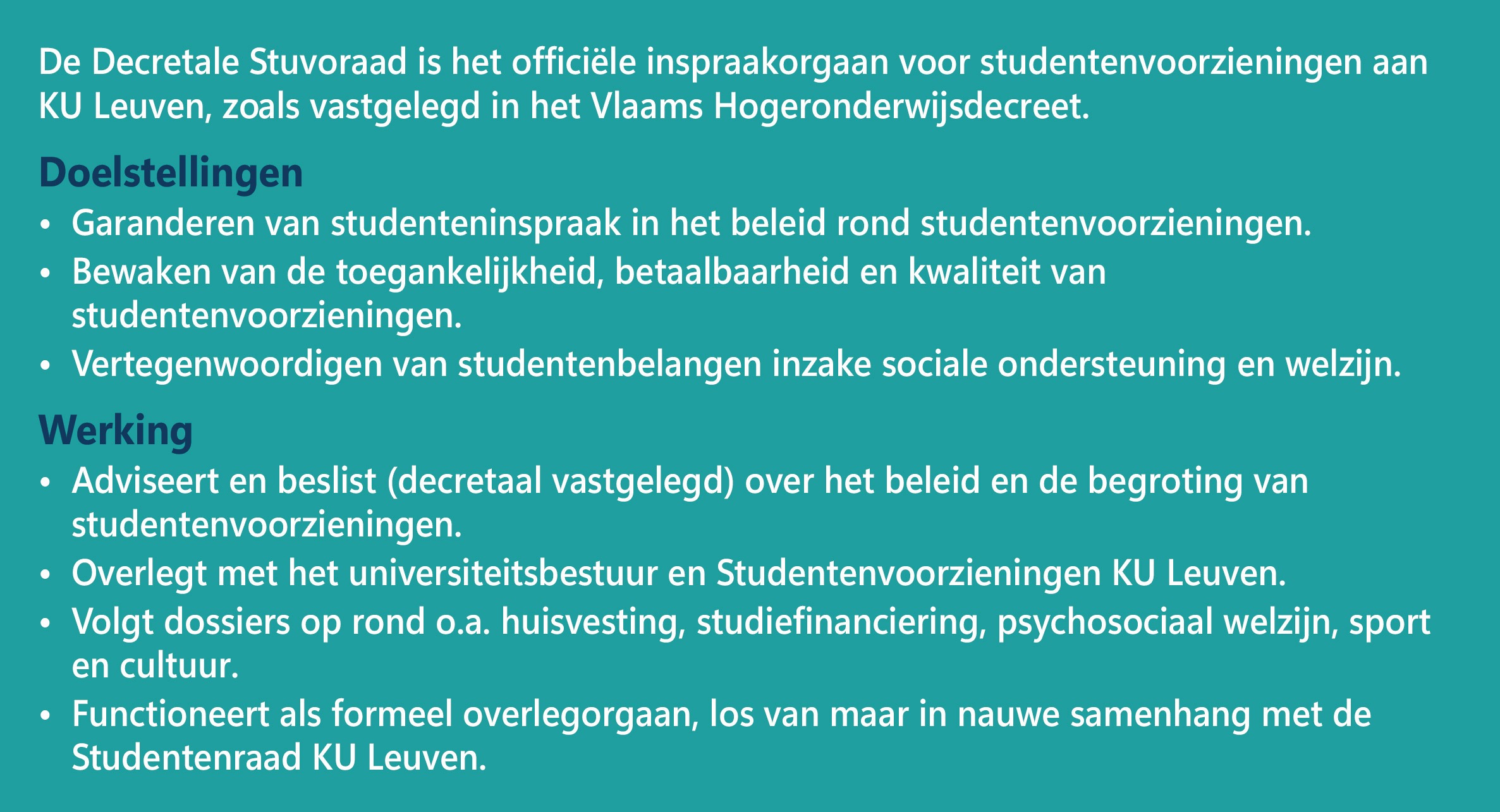 Het Dagelijks Bureau (DaBu) verzorgt de dagelijkse werking van Stura. Zij staan dag en nacht klaar voor Stura en vormen de kern van onze Studentenraad.