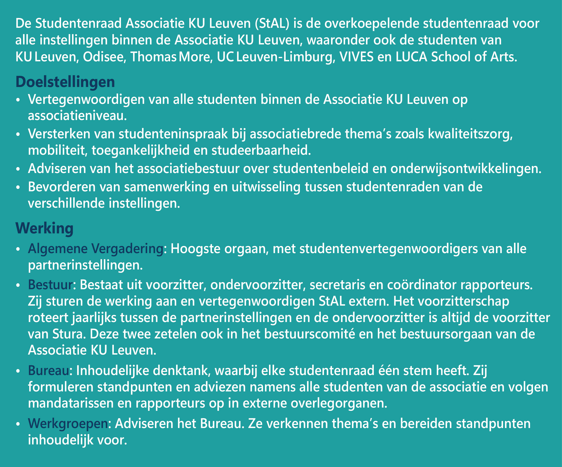 Het Algemeen Bureau (AB) is het bredere team van Stura. Ze bestaat uit verschillende mandatarissen met elk hun eigen specialisatie en deeldomein.
