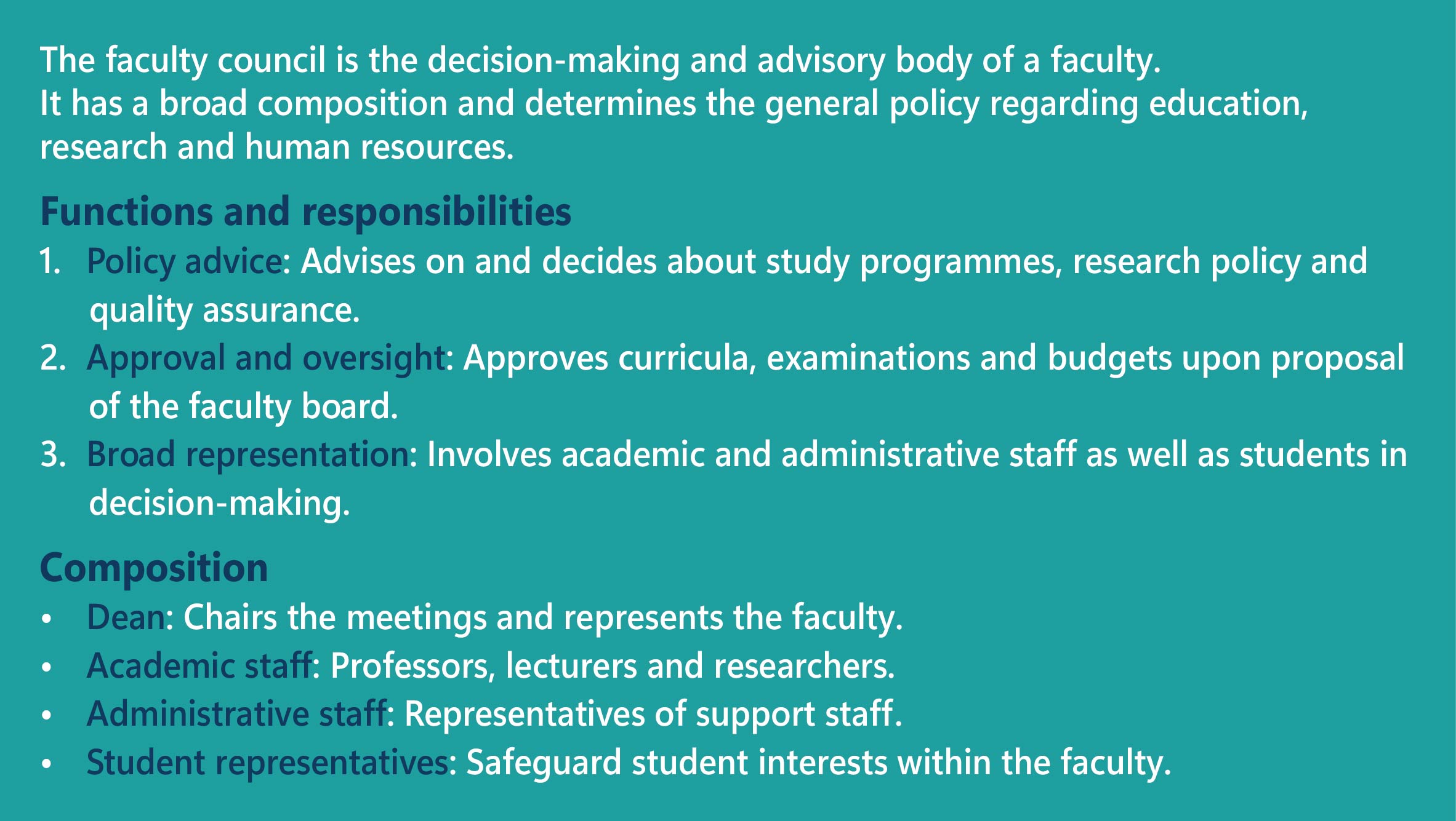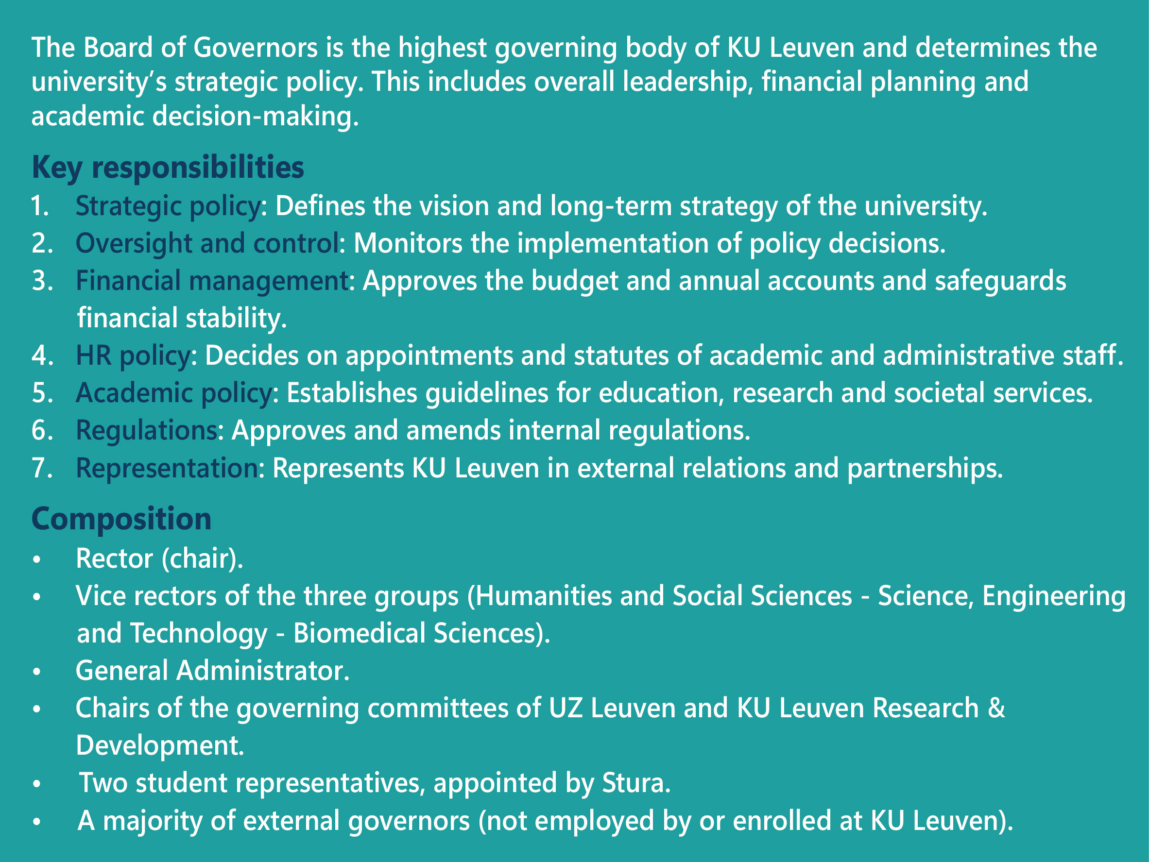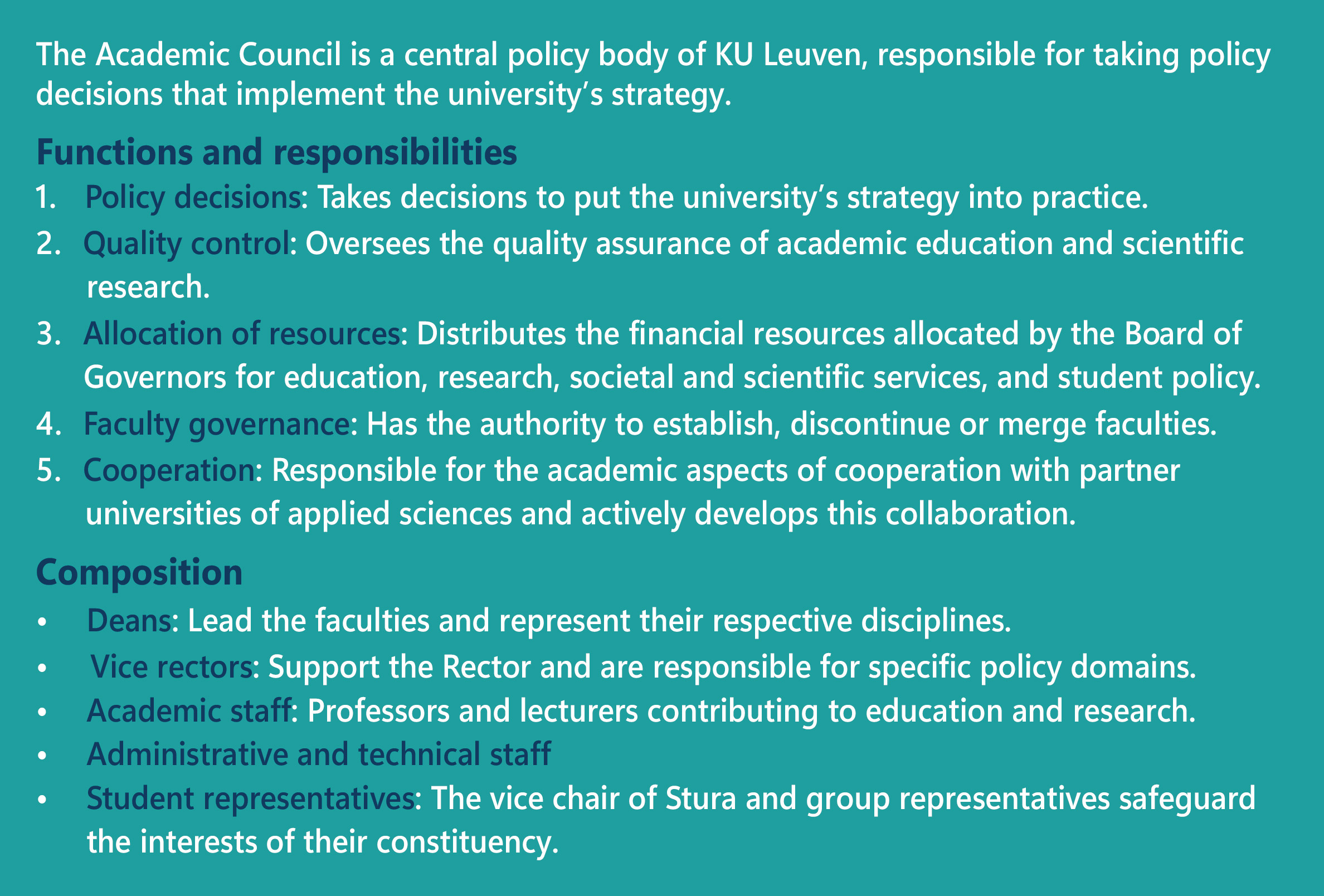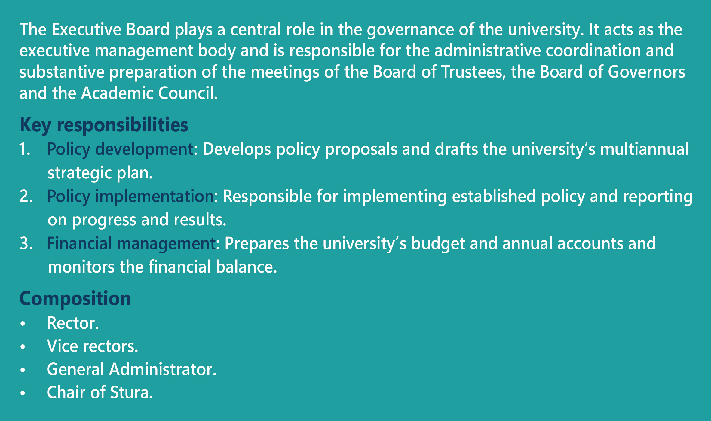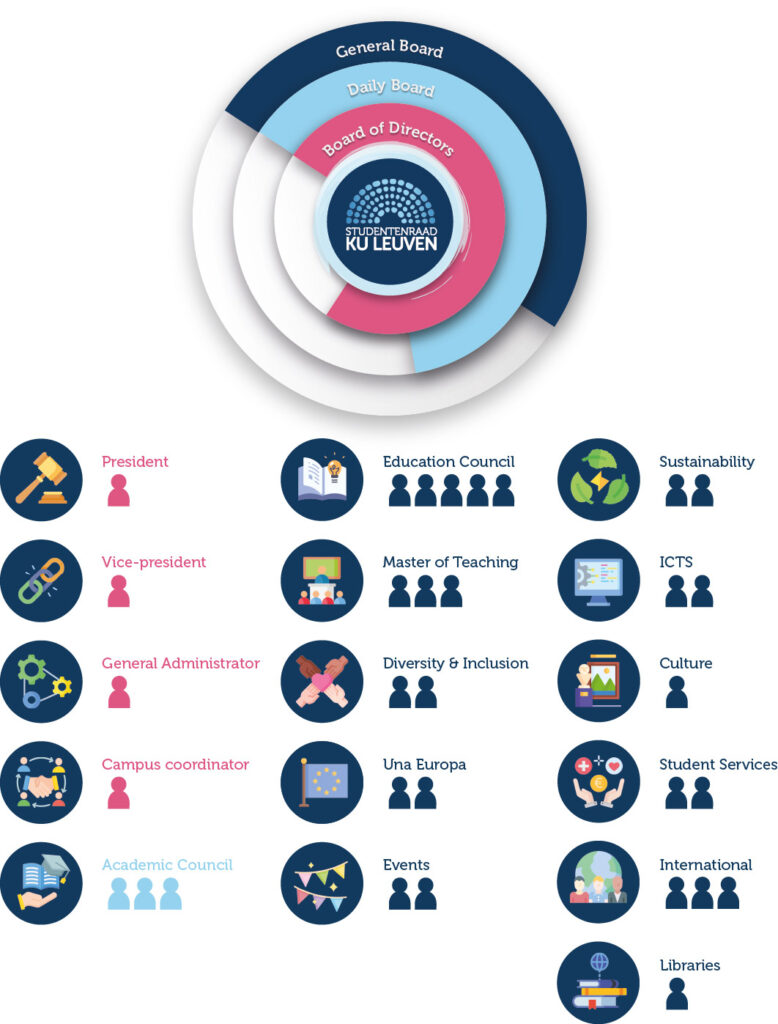 The Board of Directors (BoD) is responsible for the non-profit association, the office, the budget, succession of staff members…, They ensure that the practical affairs of the Student Council are in order.