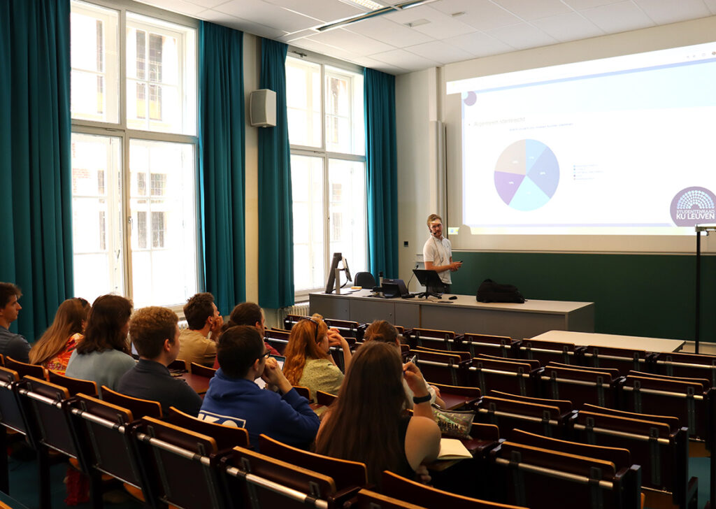 Together with the Student Council KU Leuven you choose the ultimate location and a good moderator, we provide the promo and a drink afterwards! Not sure how to prepare something like that? No problem at all. We have a lot of sample presentations!